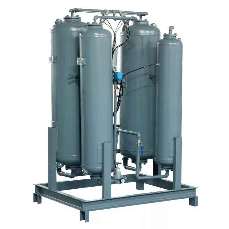 Адсорбційний генератор азоту зі змінним тиском використовує чисте стиснене повітря як сировину та вуглецеве молекулярне сито як адсорбент і використовує принцип адсорбції зі змінним тиском для отримання азоту при кімнатній температурі. Відповідно до різниці gf адсорбції кисню та азоту в повітрі на поверхні вуглецевого молекулярного сита та швидкості дифузії кисню та азоту в вуглецевому молекулярному ситі відкриття та закриття програмованого контролера керує запрограмованим клапаном, реалізуючи процес адсорбції під тиском і десорбції при зниженому тиску, завершення розділення кисню та азоту та отримання азоту необхідної чистоти.